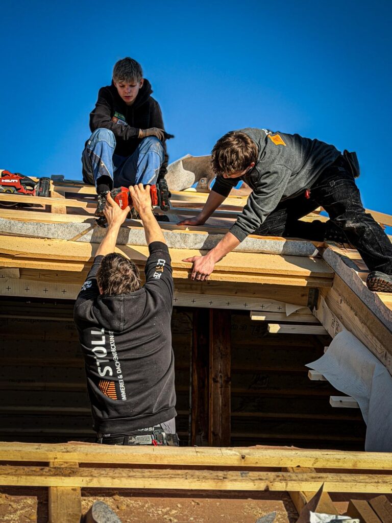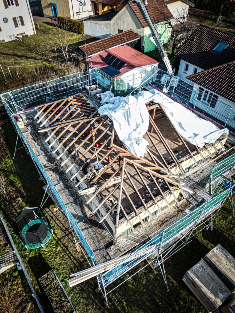 Zu Beginn wurde das bestehende Dach vollständig zurückgebaut, um die Grundlage für einen modernen und energieeffizienten Neuaufbau zu schaffen.