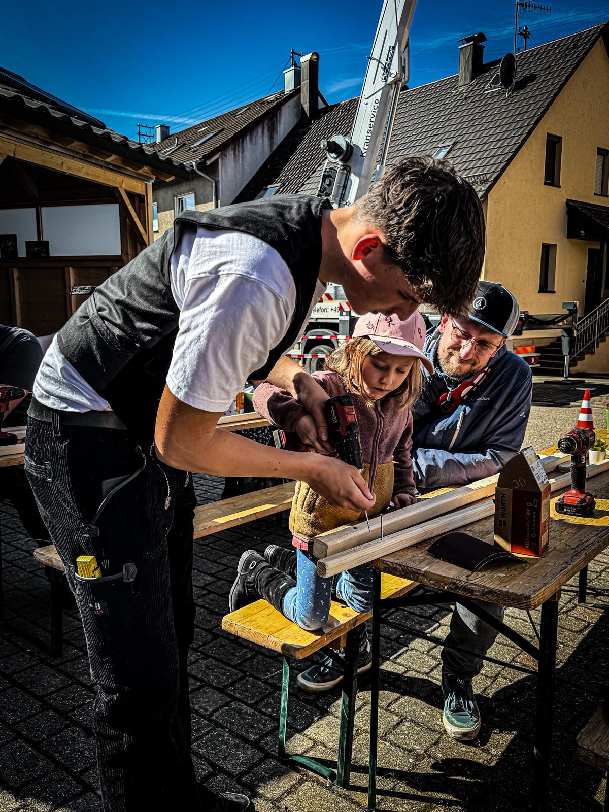 Bei „Schlag den Zimmermann“ konnten sich die Besucher mit uns messen, und in Kooperation mit Stabila sorgte die Wasserwaagen-Challenge für Spannung und die Chance auf tolle Preise. Natürlich haben wir auch wieder gemeinsam mit den Kindern Stelzen gebaut – ein Highlight, das für viel Begeisterung gesorgt hat.